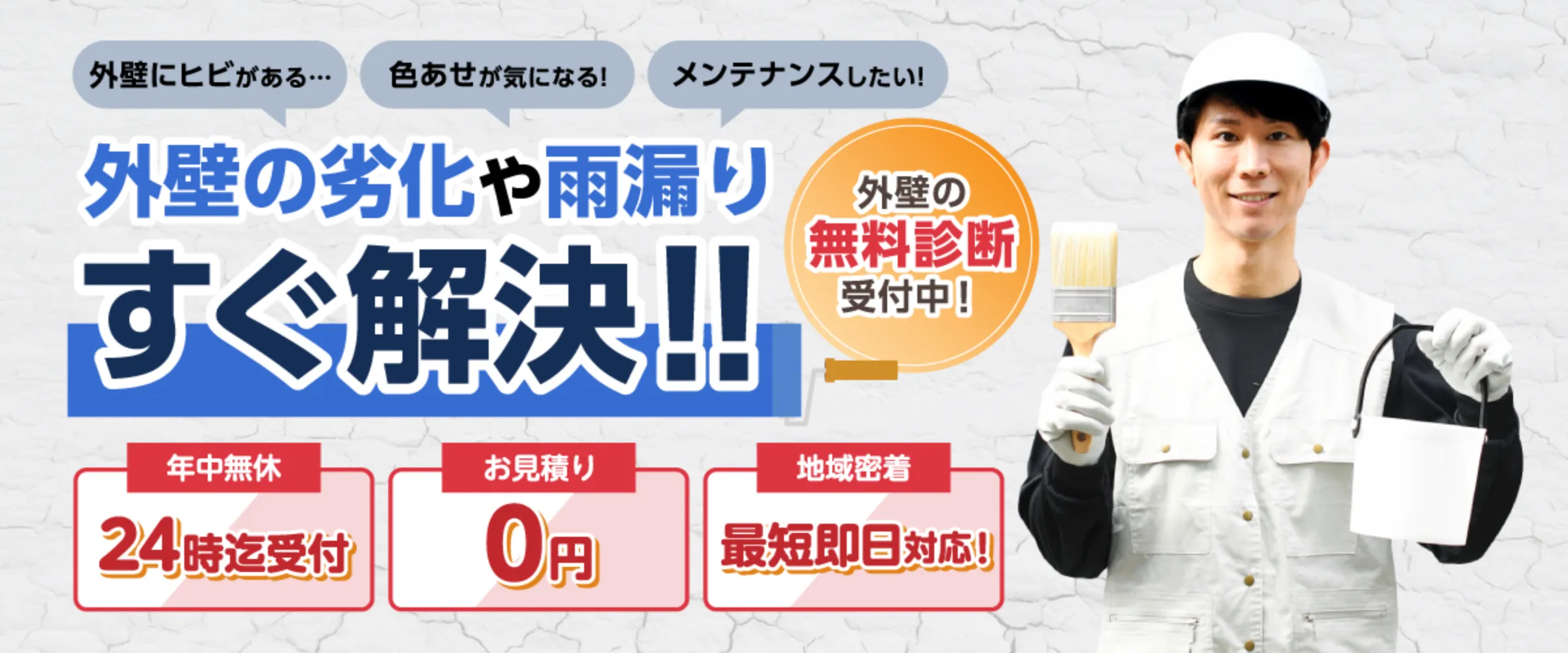 費用は一切かかりません。専門スタッフが外壁の劣化やヒビ割れをしっかり診断し、写真付きで状態をレポート。診断もお見積りも完全無料で対応します。